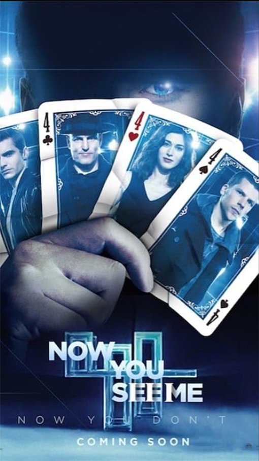 "Now You See Me: Now You Don't" (2025). Dirección: Ruben Fleischer. Guión: Eric Warren Singer, Seth Grahame-Smith, Mike Lesslie. Reparto: Jesse Eisenberg, Woody Harrelson, Dave Franco, Isla Fisher, Justice Smith, Dominic Sessa, Ariana Greenblatt, Rosamund Pike, Morgan Freeman.