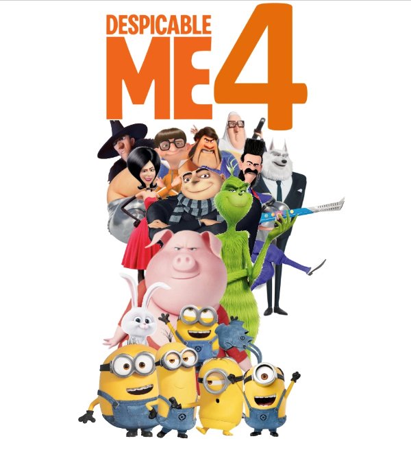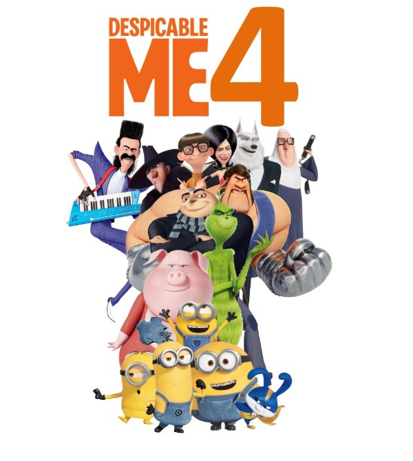 "Despicable Me 4" (2024). Dirección: Chris Renaud, Patrick Delage. Guión: Mike White, Ken Daurio. Reparto: Steve Carell, Kristen Wiig, Will Ferrell, Pierre Coffin, Joey King, Sofia Vergara, Stephen Colbert, Miranda Cosgrove, Chloe Fineman, Steve Coogan, Chris Renaud, Dana Gaier, Madison Polan.