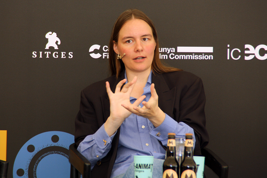Como suele suceder en estos casos, cuando la peli presentada propone un tema de los de órdago, se habla más del tema que de la peli, y eso es justo lo que ocurre en la rueda de La hermanastra fea. Emilie Blichfeldt comparte con nosotros su experiencia personal y nos cuenta que ella misma sufrió TDC (Trastorno Dismórfico Corporal) al ser víctima de los cánones de belleza impuestos por los hombres. De ahí que pese a lo dramático de las situaciones, la película contenga humor. “El humor existe como catarsis personal y establece una distancia que permite reflexionar sobre ello”, se sincera, y confiesa que le hace gracia que en pleno año 2025, aún haya chicas soñando con encontrar al príncipe azul.