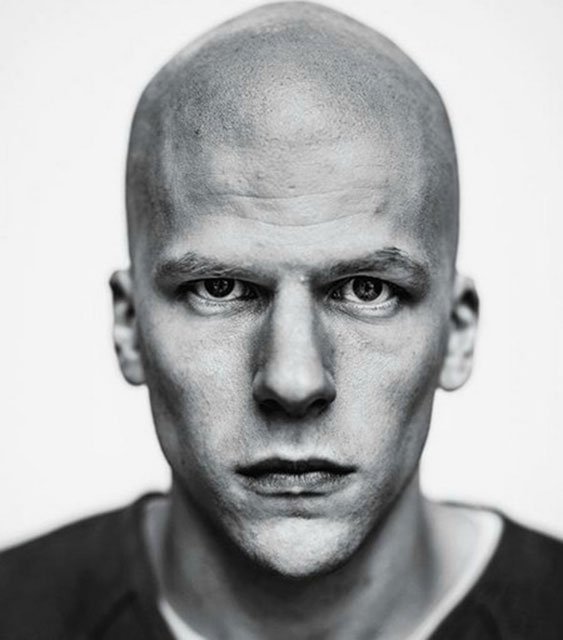 Foto de Jesse Eisenberg como Lex Luthor luciendo cabeza bolo para Batman v Superman