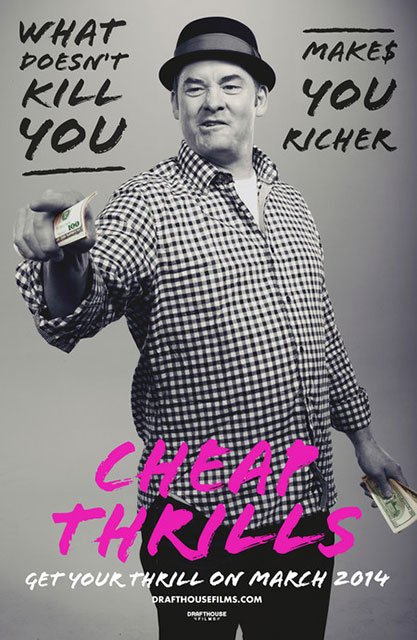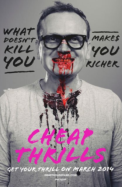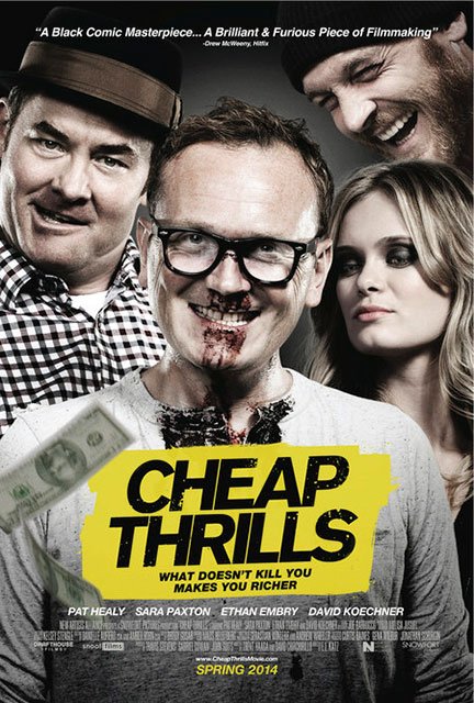 <¿Qué precio tenemos cada uno de nosotros? ¿Qué estaríamos dispuestos a hacer por dinero? ¿Hasta dónde nos prestaríamos a rebajar nuestra dignidad y valores morales si el bienestar de nuestros seres queridos dependiera de ello? Es bastante fácil que varias de estas preguntas le asalten a uno a lo largo del metraje de Cheap Thrills, quizás la película a la vez más hilarante, desagradable, punzante y sobre todo triste que pudimos ver en Sitges 2013. Las dos principales virtudes de Cheap Thrills son 1) un guión sencillo y de estructura teatral pero extremadamente astuto, que en ningún momento pierde fuelle y que sabe utilizar muy bien los giros sorpresa, y 2) cuatro actores protagonistas absolutamente descomunales (en especial Pat Healy como uno de los dos pobres diablos que aceptan el juego, y David Koechner como Colin, el hijo de puta manipulador y sádico que va proponiendo las apuestas)./>