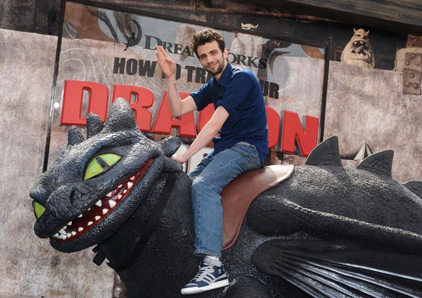 ¿O quizás sí? ¿Será por eso que no se quitó las gafas ni para posar en el photocall junto a sus compañeros (America Ferrera -voz de Astrid-, que en lugar de la premiere de una película de dibujos, creyó estar en la de Las mujeres de verdad tienen curvas 2; y Jay Baruchel –voz de Hipo-, quien por fin se quitó la espina de no haberse subido nunca a uno de los dragones gaudinianos del Parque Güell de Barcelona)./>