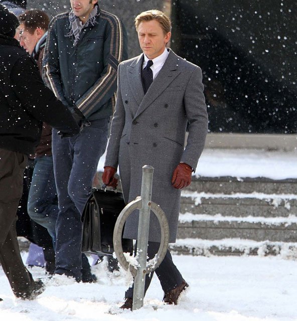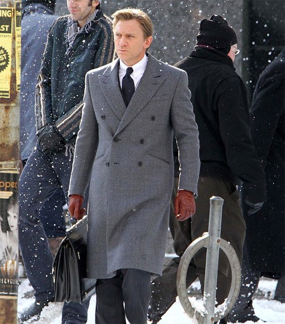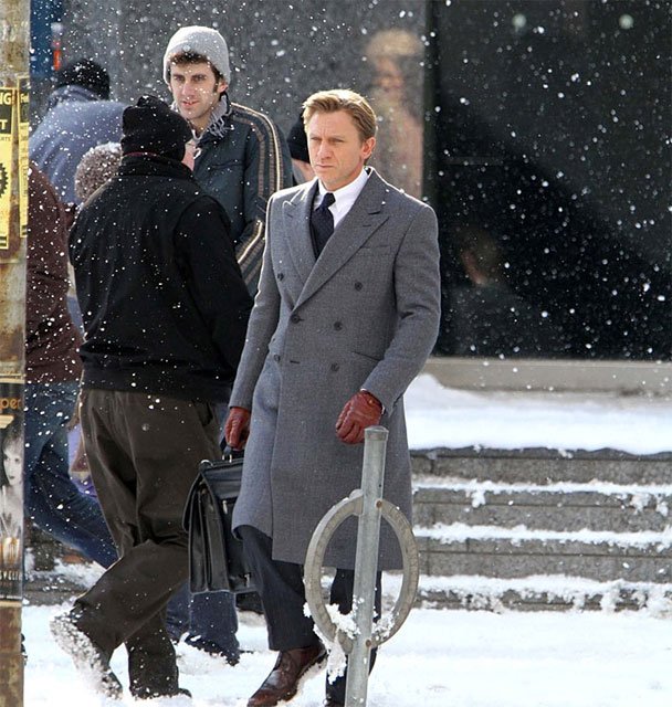 <Por la pinta que luce Danielito Craig en estas fotos podría tratarse de la nueva aventura de James Bond donde el agente 007 se pasea de incógnito por las calles de Moscú en espera de su contacto (Joe Don Baker, por ejemplo), pero no, se trata de un thriller dirigido por Jim Sheridan, que abandona por un tiempo los dramas irlandeses con Daniel Day Lewis y se pasa al cine venusvillero.