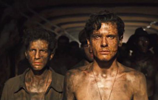 "Unbroken" (2014). Director: Angelina Jolie. Reparto: Jack O`Connell, Domhnall Gleeson, Garrett Hedlund, Jai Courtney, Añex Russell y John D`Leo.
