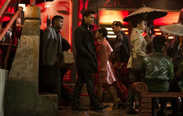 Uno de los decorados más complicados de llevar a la realidad fue La Colonia, que necesitaba ser diseñado de forma estratégica. Tatopoulos asegura que se siente especialmente orgulloso de su trabajo con el gigantesco ascensor que va a través de la tierra y conecta a la Federación Británica con La Colonia, en gran medida porque es algo que no se ha visto jamás en la gran pantalla. “Jamás había visto un concepto similar en una película: un inmenso ascensor que viaja a través del planeta Tierra”, explica el director artístico. “Eso me permitió hacer algo verdaderamente nuevo. En realidad está diseñado basado en el concepto de un avión 747, para que resulte familiar para el espectador. Cuando la gente vea la película, quiero que se identifiquen con ella y no sean meramente espectadores”./>